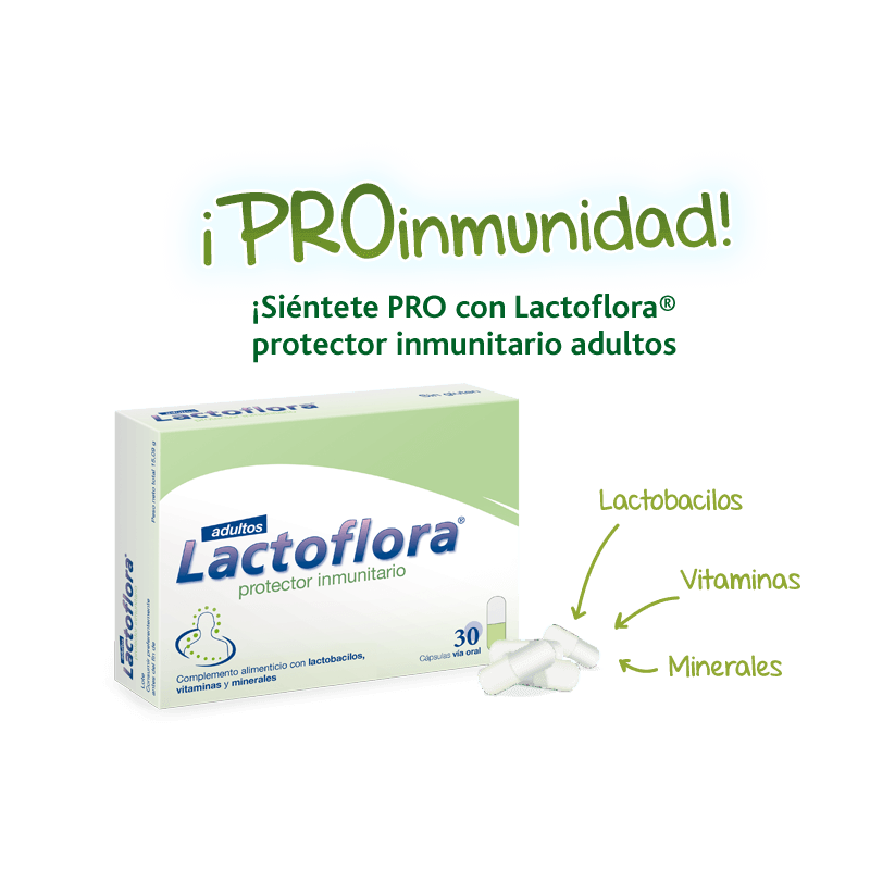 Lactoflora® protector inmunitario adultos está formulado con probióticos , vitaminas (B9, B6, B12, A y C) y minerales (Zinc, Se) que contribuyen al buen funcionamiento de nuestro sistema inmunitario.