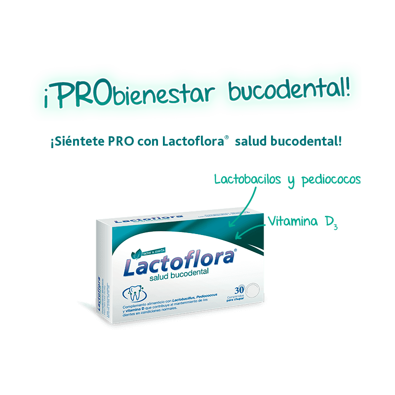 Lactoflora® salud bucodental está formulado con 1.000 millones de lactobacilos y pediococos vivos aislados de la mucosa bucal de individuos sanos y vitamina D3.