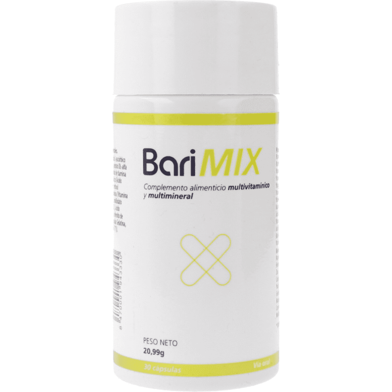 Barimix es un complemento alimenticio multivitamínico y multimineral que está especialmente diseñado para personas que se han soemtido a la cirugía bariátrica, cuando la dieta y el ejercicio no han funcionado o cuando hay problemas graves de salud por el peso elevado. Consta de 30 cápsulas compuestas por minerales y nutrientes necesarios para el cuerpo.