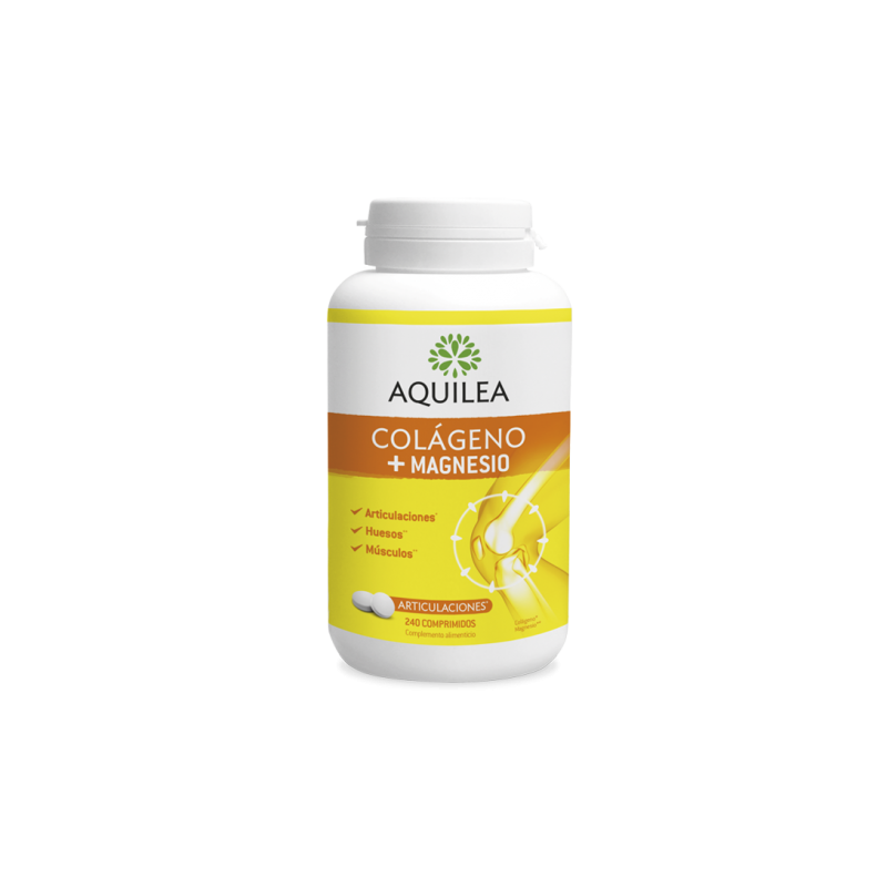 Aquilea Articulaciones Colágeno+Magnesio ofrece una solución natural en forma de comprimidos de colágeno y magnesio, gracias a la fuerza de la naturaleza para ayudar a mantener en forma tus articulaciones y músculos.