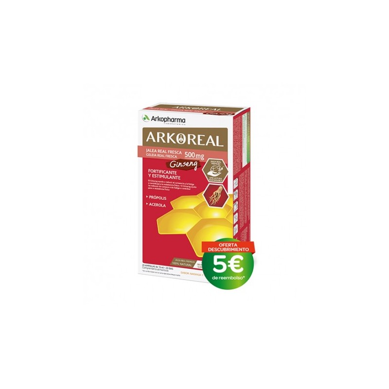 Estas ampollas de Arkopharma contiene Jalea Real, Ginseng, Própolis y Acerola, aportándonos energía natural. La Jalea Real elaborada por Arkopharma es de primera calidad y está obtenida de un entorno que no está contaminado, debido que se realiza un control de forma gradual que les permita medir la calidad del aire, el agua y los suelos en un radio de 20 km que conforma el territorio donde se encuentran las colmenas.
