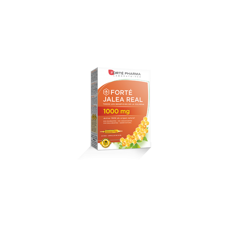 Verdadero concentrado de tonicidad en ampolla, Forté Jalea Real 1000mg es un producto 100% de origen natural.