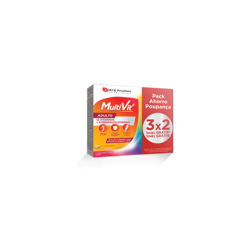 Energy Multivit Adulto es un complejo multivitamínico (12 vitaminas + 9 minerales y oligoelementos) desarrollado para aportar forma y tono