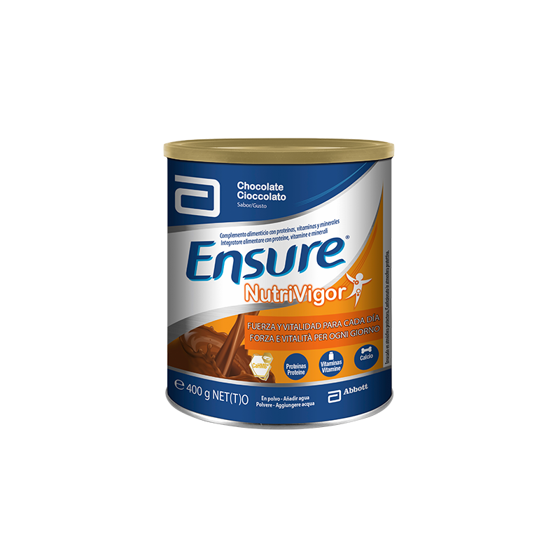 Ensure® NutriVigor es un complemento alimenticio con una fórmula exclusiva que contiene CaHMB, y además, vitamina D y proteínas que contribuyen a conservar la masa muscular.