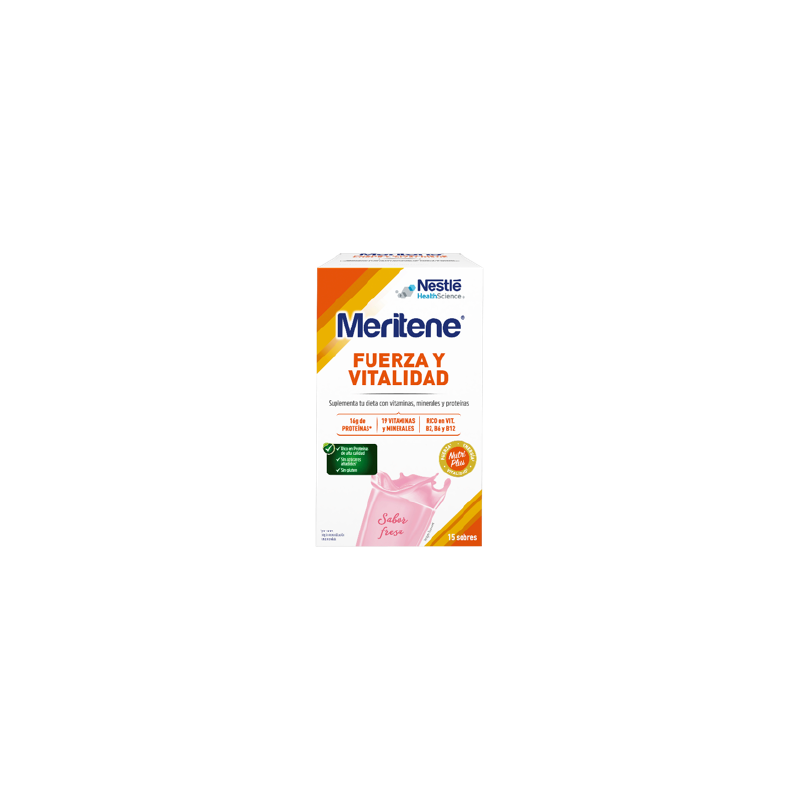 MERITENE® BATIDO y MERITENE® FIBRA te ayudan a complementar la alimentación habitual cuando necesites un aporte extra de nutrientes, o bien, cuando la dieta diaria es insuficiente. Su alto contenido en proteínas de alta calidad, vitaminas y minerales* es ideal para personas adultas activas que quieren recuperar la fuerza y vitalidad.