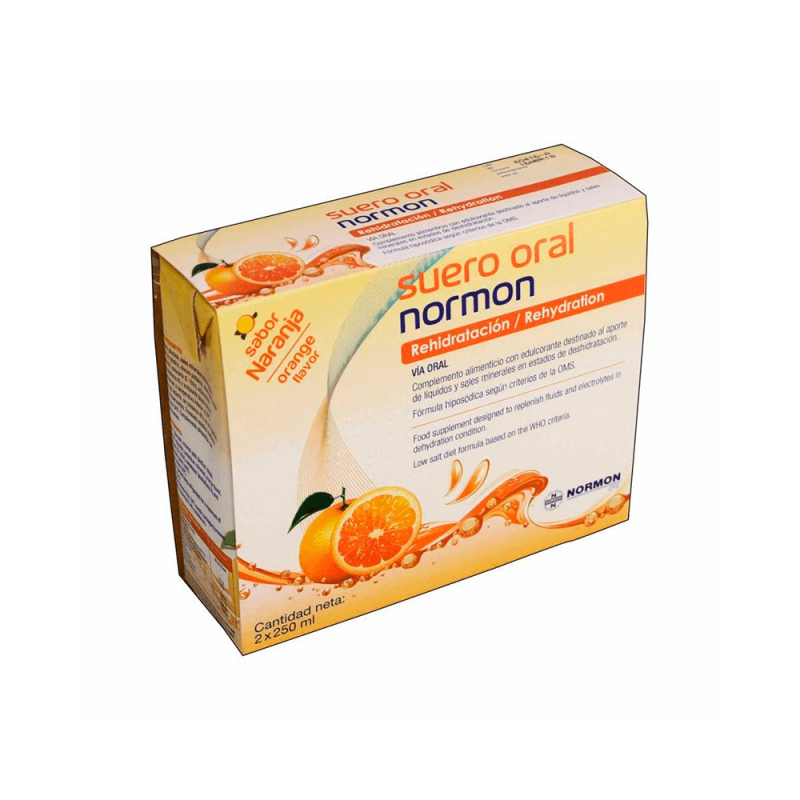 Complemento alimenticio en forma de suero oral que aporta líquidos y sales minerales en estados de deshidratación. Sigue una fórmula hiposódica, según criterios de la OMS. Sabor naranja.