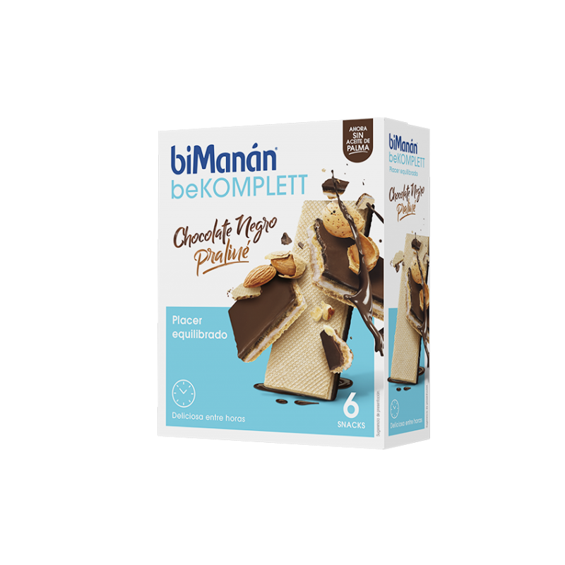 Barquillo con base bañada en chocolate negro y relleno praliné. Sin aceite de palma. Con un alto contenido en fibra, es el perfecto snack entre horas para mantener tus calorías bajo control y llegar con menos hambre a la comida.