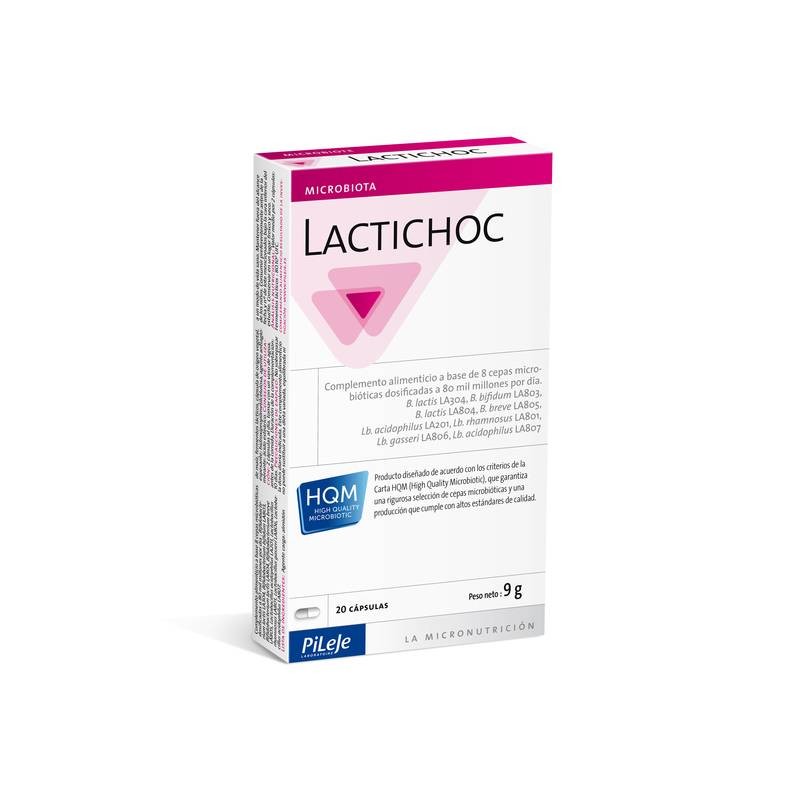 Lactichoc a base de 8 cepas microbióticas dosificadas a 80 mil millones por día.