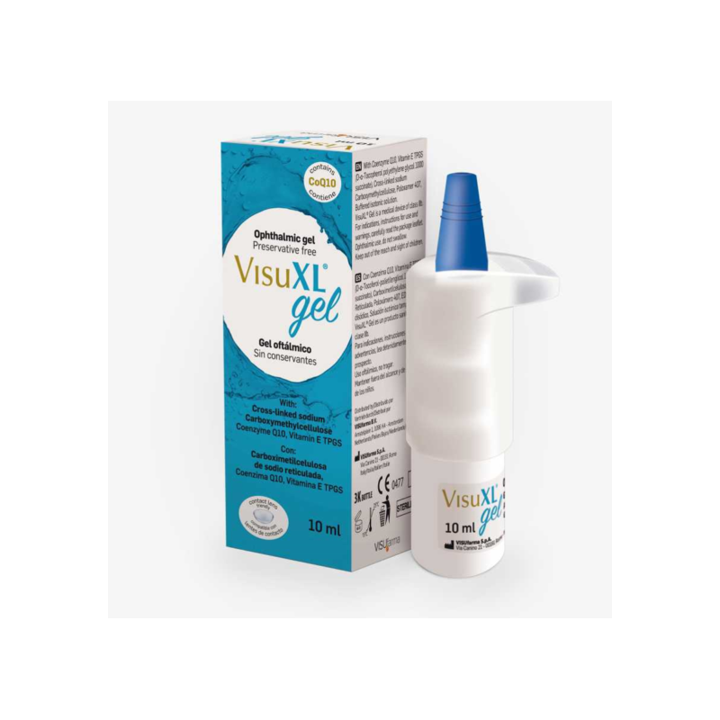 VisuXL® Gel® es un excelente gel que se encuentra en estado líquido en el frasco y se convierte en gel cuando entra en contacto con la superficie del ojo.