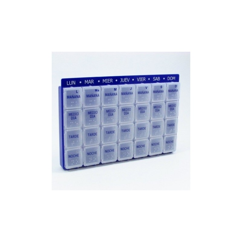 Pastillero pensado para personas polimedicadas que necesitan un pastillero de mayor tamaño y necesitan un organizador de medicinas semanal grande con 4 tomas diarias.