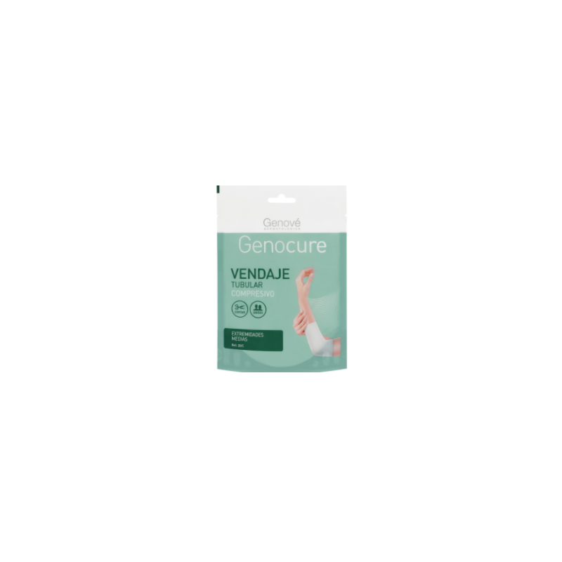 Genocure® Venda Tubular Compresiva Extremidades Medias es un vendaje unisex para casos de hematomas, edemas, inflamaciones y otros, en extremidades medias.
