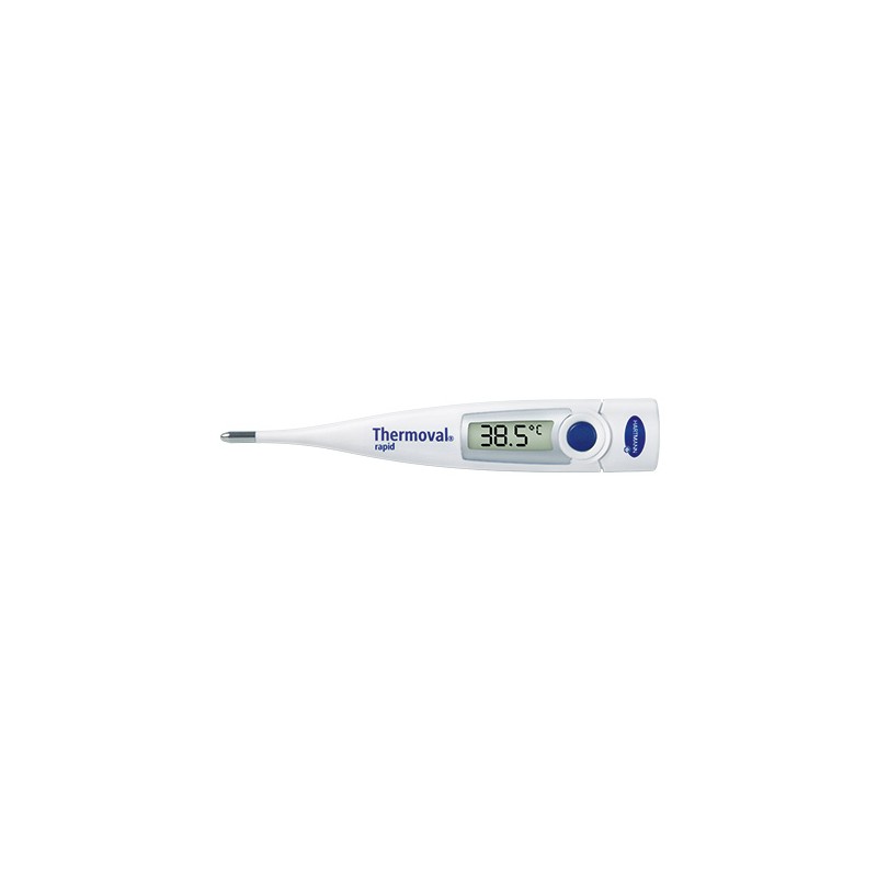 Thermoval® Rapid gusta a todo el mundo; es un termómetro clínico para familias y solteros, para niños y adultos. De manejo sencillo, lectura fácil (gracias a su gran pantalla) y mediciones rápidas, Thermoval® Rapid es el complemento perfecto en su botiquín doméstico.