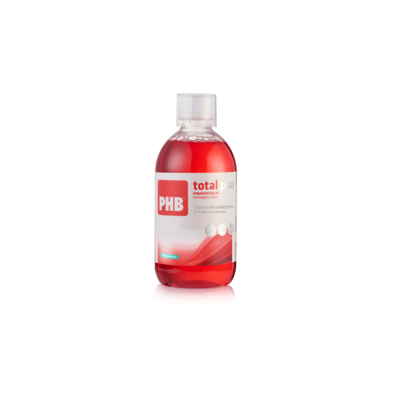 El enjuague PHB Total plus proporciona la máxima protección y frescor con la formulación anticaries más avanzada. Indicado para la prevención eficaz contra la caries, placa, problemas gingivales y mal aliento.
